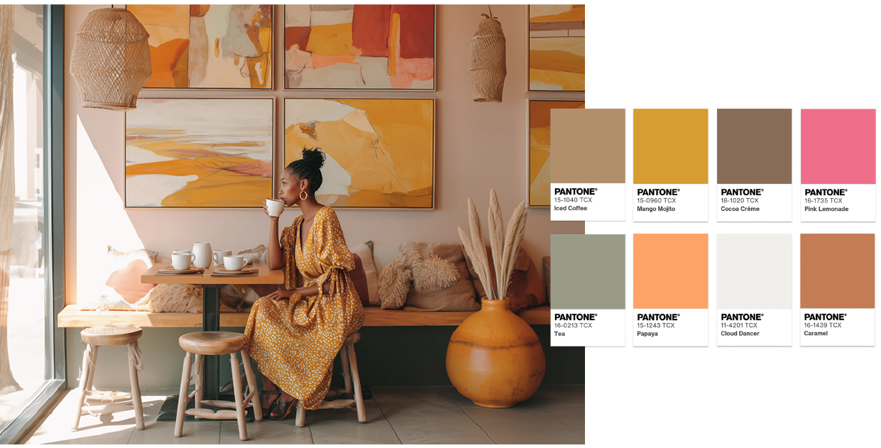 This palette combines with Cloud Dancer in warmer, more natural tones, creating cosy and relaxed compositions.