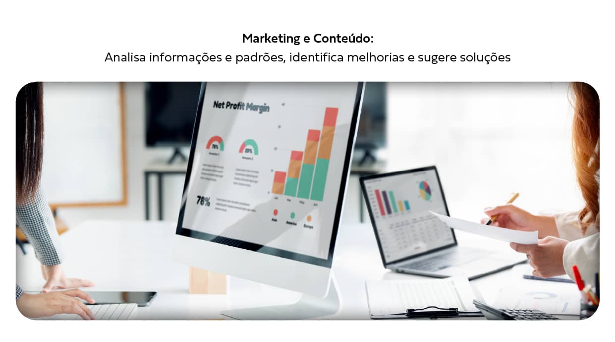 Ao analisar informação e padrões, a IA identifica melhorias possiveis e sugere soluções que reforçam a qualidade final. Pode recomendar boas práticas, detetar erros que afetam a experiência e apontar ajustamentos que tornam o conteúdo mais acessivel e eficaz.